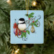 Festive Blue Vintage Christmas Chickadee Ceramic Ornament