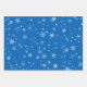 Festive Blue White Snowflake Pattern Holiday Wrapping Paper Sheets. Snowflakes everywhere. Beautiful white snowflakes in different sizes and shapes on blue background.