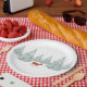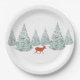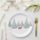 Festive Brown Deer under Snowy Spruce Trees Paper Plate