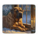 A heartwarming holiday scene featuring a dog sitting peacefully beside a window, surrounded by glowing Christmas lights. This cosy and festive design captures the spirit of the season, perfect for adding warmth and charm to any space. Ideal for dog lovers and holiday decor enthusiasts.