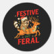 Festive But Feral Funny Christmas Raccoon Riding R Classic Round Sticker