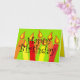 A festive Birthday card featuring large orange, red & yellow candles bright lime background!