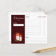 Helpful checklist for planning Christmas gifts for friends and loved ones. The design features Destei's festive illustration of white Christmas candles together with a Christmas Holly plant. The title reads: "Christmas gift list" and then there is space for the recipient's name and some notes. There are also sections for gift ideas, price, whether a gift has been bought or not and whether a gift has been wrapped. The accent colour is red.