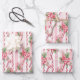 The vibrant wrapping paper showcases delightful pink flowers alongside traditional candy canes, perfect for adding a cheerful touch to holiday gifts during the festive season.