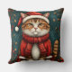 Festive Cat Wearing Santa Hat and Scarf Cushion