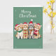 Celebrate the holidays with a cheerful Christmas card showcasing a group of adorable cats in Santa hats against a green background.