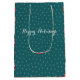 Celebrate the joy of the season with our "Festive Cats with Present Green Christmas Medium Gift Bag." This charming gift bag showcases two adorable cats presenting a stack of beautifully wrapped gifts topped with a festive star, all set against a traditional Christmas green background. The sides feature a playful pattern of cats and presents, while the back includes customisable greetings and white polka dots for a festive touch. Perfect for cat lovers and holiday enthusiasts, this delightful gift bag adds a whimsical and heartwarming feel to your holiday gifting. Spread cheer and make your presents stand out with this enchanting design!