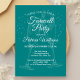 Raise a Glass to a Farewell This beautifully designed invitation features a teal backdrop with champagne glasses subtly in the background, offering a classy feel for any farewell party. With "Farewell Party" scripted elegantly on the front and easy-to-read serif font for details, it's both stylish and professional. The back keeps the energy up with the phrase "Let's Party" to ensure the event starts on a high note. Ideal for corporate events or family celebrations, and all text can be tailored to your specifications.