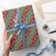 A repeating diagonal argyle pattern featuring layered diamond shapes in classic red and green tones.
