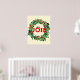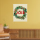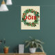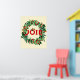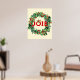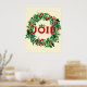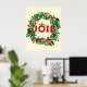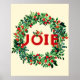 Big word "JOIE", French for "joy" inside rich evergreen blue and red berry wreath on cream background for effective and festive home décor.