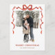Festive Christmas Boho Red Bow Ribbon 2 Photo Postcard