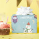 This cute holidays design features festive owls, foxes, red cars with Christmas trees, snowmen, houses and more on a soft blue background of moon and stars.
