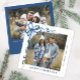 Festive Christmas Dusty Blue Bow Ribbon 2 Photo Holiday Card
