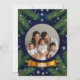 Circular holiday frame adorned with gold ribbon, surrounded by evergreens and snowflakes, perfect for seasonal designs such as Christmas cards or event invites.