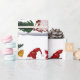 Christmas wrapping paper with gnomes, poinsettia, and bells. Festive wrapping paper for all your Christmas gifts.