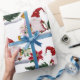 Festive Christmas Gnomes, Poinsettia and Bells Wrapping Paper