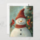 Festive Christmas Greeting Snowman and Cardinals Postcard