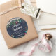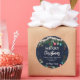 This Christmas sticker features a classic and festive holiday design with pine branches adorned with ornaments, pinecones, white berries, and candy canes. Set against a rich dark navy blue background with delicate snowfall accents, the sticker includes a personalised message of "Merry Christmas" and warm holiday wishes. The circular format makes it perfect for adding a charming touch to gift wrapping, envelopes, or holiday party favours.