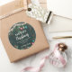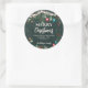 This Christmas sticker features a classic and festive holiday design with pine branches adorned with ornaments, pinecones, white berries, and candy canes. Set against a rich dark green background with delicate snowfall accents, the sticker includes a personalised message of "Merry Christmas" and warm holiday wishes. The circular format makes it perfect for adding a charming touch to gift wrapping, envelopes, or holiday party favours.