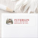 These awesome return address labels with a festive home in winter with snow and Christmas decorations, your last name and address in red will make addressing your Christmas moving cards just that much easier! They are so easy to just stick on the envelope! The font is crisp and clean making them look modern yet traditional. It is so easy to make these your own. Simply select Personalise this template and type in your family name and your address. It's that easy!