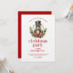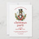 Christmas-themed Christmas party invite featuring festive Christmas nutcracker and red retro typography—white background.