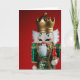 Greeting card with festive christmas nutcracker on red background. Blank inside so you can customise your holiday greeting.