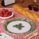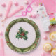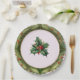 This festive Christmas plate, which features a gorgeous holly theme, will set your table with holiday pleasure. This plate features an off white centre with holly and is surrounded by a festive olive green botanical border with peeks of pine needle underneath.