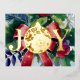 Send holiday greetings with style & sparkle this Christmas with our Festive Christmas Ornament Foil Holiday Post Card featuring watercolor illustration of winter greenery and red bow accented by the word "JOY" and a beautiful gilded ornament and stars!