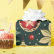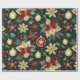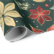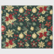 Christmas ornaments and flowers in a festive holiday pattern with green, red, and dark green colours