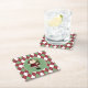 Colourful festive pulp board paper coasters done in a muted red, green, and white argyle pattern. A cute Santa Claus, holding a little Christmas tree, is set in a green circle, in the middle of the coaster. Customise to add text to this fun coaster. Great for parties, holiday season, and gift giving.