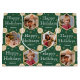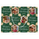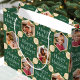 Make your holiday gifts extra special with a custom photo gift bag! This editable template is personalised with four of your favourite photos, and the recipient's name, your family name, or the holiday year. it features hexagonal picture frames, set against a festive background of snowflakes and stars, along with the phrase "Happy Holidays". A stylish design pairing traditional typography with a classic geometric design. Perfect for photos of kids, family, friends, and pets! An all-over pattern gift bag, available with a matte or glossy finish. Printed colours: green, white, and a gold colour.