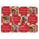 Make your holiday gifts extra special with a custom photo gift bag! This editable template is personalised with four of your favourite photos, and the recipient's name, your family name, or the holiday year. it features hexagonal picture frames, set against a festive background of snowflakes and stars, along with the phrase "Happy Holidays". A stylish design pairing traditional typography with a classic geometric design. Perfect for photos of kids, family, friends, and pets! An all-over pattern gift bag, available with a matte or glossy finish. Printed colours: red, white, and a gold colour.