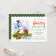 This holidays design features a watercolor snowman with pine tree branch, holly and pine cone, with your custom event type (shown with "Holiday Cookie Exchange") in chic red and green calligraphy script lettering. Personalised with your Christmas party details by editing the text boxes provided.