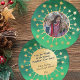 A charming, whimsical Christmas and winter holiday design with an elegant magic and ethereal aesthetic. A dark green background with a soft textured watercolor feel overlayed with brilliant gold stars and details. --> NOTES: Customise the names and year on the back and the photo on the front. The words of the message cannot be changed. This is not a foil card—one photo layout.