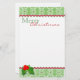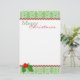 Elegant Christmas stationery done in white, with a vintage green and white pattern header and footer that is edged in graphics that look like red rick rack. A sprig of holly decorates the bottom left of the paper and Merry Christmas in red and green text, at the top. Customise to add text this this pretty holiday letter paper, or write buy as is and hand write your Christmas letter.