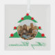 Festive Christmas Tree Family Photo Script Glass Ornament. Festive design with Christmas trees with red balls and snowflakes on the green. The colours are holiday red and green. Add your photo.