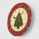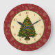 Festive decorated vintage Christmas tree on round label with red and gold damask background with custom font numbered dial.