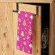 Festive Christmas Trees Snowflakes Pattern Pink Tea Towel