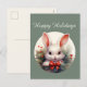 Festive Christmas watercolor Country bunny Holiday Postcard