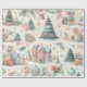 Bright and cheerful, the wrapping paper showcases a delightful array of Christmas motifs, including decorated trees, colourful gifts, and charming houses. The soft pastel colours create a whimsical feeling, perfect for the holiday season.