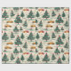 Decorative wrapping paper featuring cheerful Christmas trees adorned with ornaments, star toppers, and colourful vintage cars, capturing the spirit of the holiday season in a whimsical design.