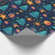 A colourful design featuring various Christmas ornaments and festive foliage on a dark background, perfect for wrapping gifts and spreading holiday cheer during the season.