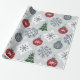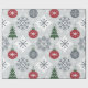 Festive Christmas Wrapping Paper with Snowflakes, Ornaments, and Trees - Red, Blue, White Holiday