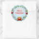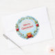 Festive Christmas Wreath Frame With Blue Pine Classic Round Sticker