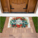 This creative welcome doormat features an illustration of a decorative Christmas holiday wreath made of beautiful flowers. Please feel free to adjust all the available options as you wish.