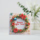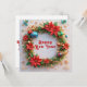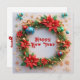 Bright and cheerful Christmas wreath adorned with vibrant poinsettias, glittering ornaments, snowflakes, and ribbons on a warm soft background symbolising holiday joy and celebrations.