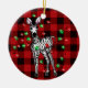Festive Christmas Zebra, xmas wreath, red plaid Ceramic Tree Decoration