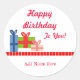 Festive round Sticker with birthday gifts on the left is ideal for any birthday. It is available in 2 sizes and can be stuck anywhere or can be used as labels on the envelopes of Birthday wishing cards. Customise by adding the recipient's name.