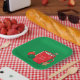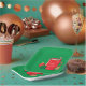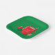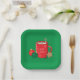 A green square paper plate for your Christmas party featuring the design of a red mug filled up with hot chocolate and small marshmallows . Find matching paper cups and napkins .