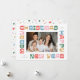 Merry Christmas and Happy New Year! The fun bold font in a bright festive colour palette creates a cheerful frame for your family photo. The back is a playful confetti pattern in the same unique mix of pink, red, blue and green.